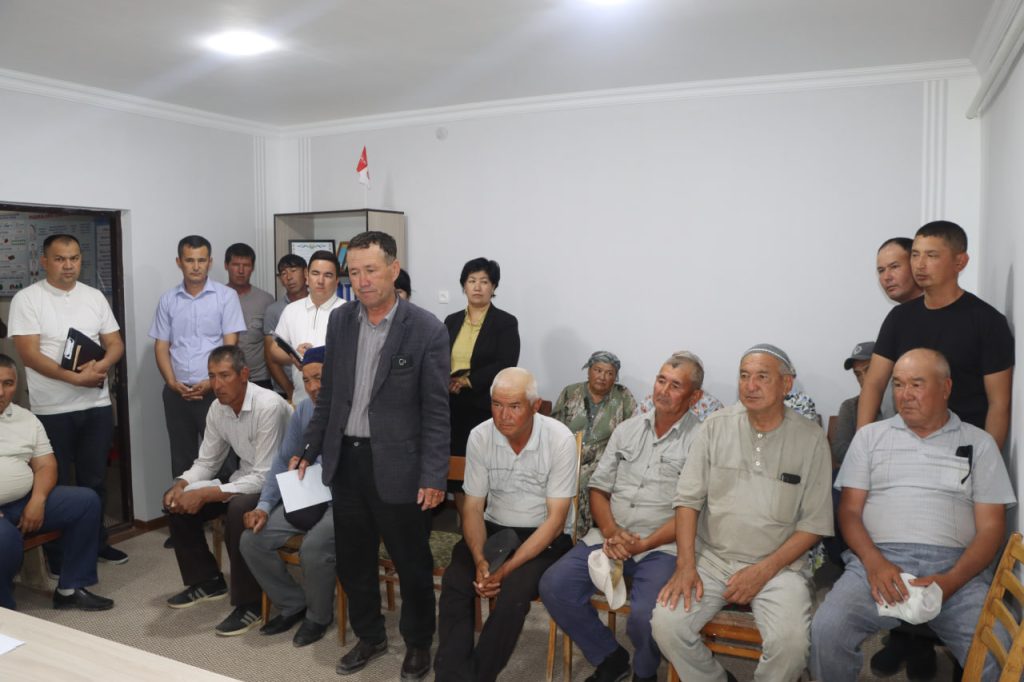 Ушырасыўда район ҳәкими З.Зайтов тәрепинен Өзбекстан Республикасы Президентиниң Сайхунабад районына сапары даўамында қыйтақ жерлерден пайдаланыў тәжирийбесин енгизиў бойынша «Бир мәҳәлле-бир өним» басламасын енгизиў тийкарынан тамарқа жер ийелериниӊ егислик майданларына баў-бақша ҳәм палыз өнимлерин егиў арқалы өз шаӊарағына дәрамат табыў бойынша кеңнен түсиниклер берилди.